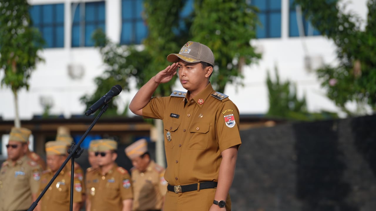 Perdana bekerja paska dilantik, Wakil Bupati Mesuji M Yugi Wicaksono mengambil apel Mingguan di Halaman Pemerintah Kabupaten Mesuji. Senin, (24/02/2025).