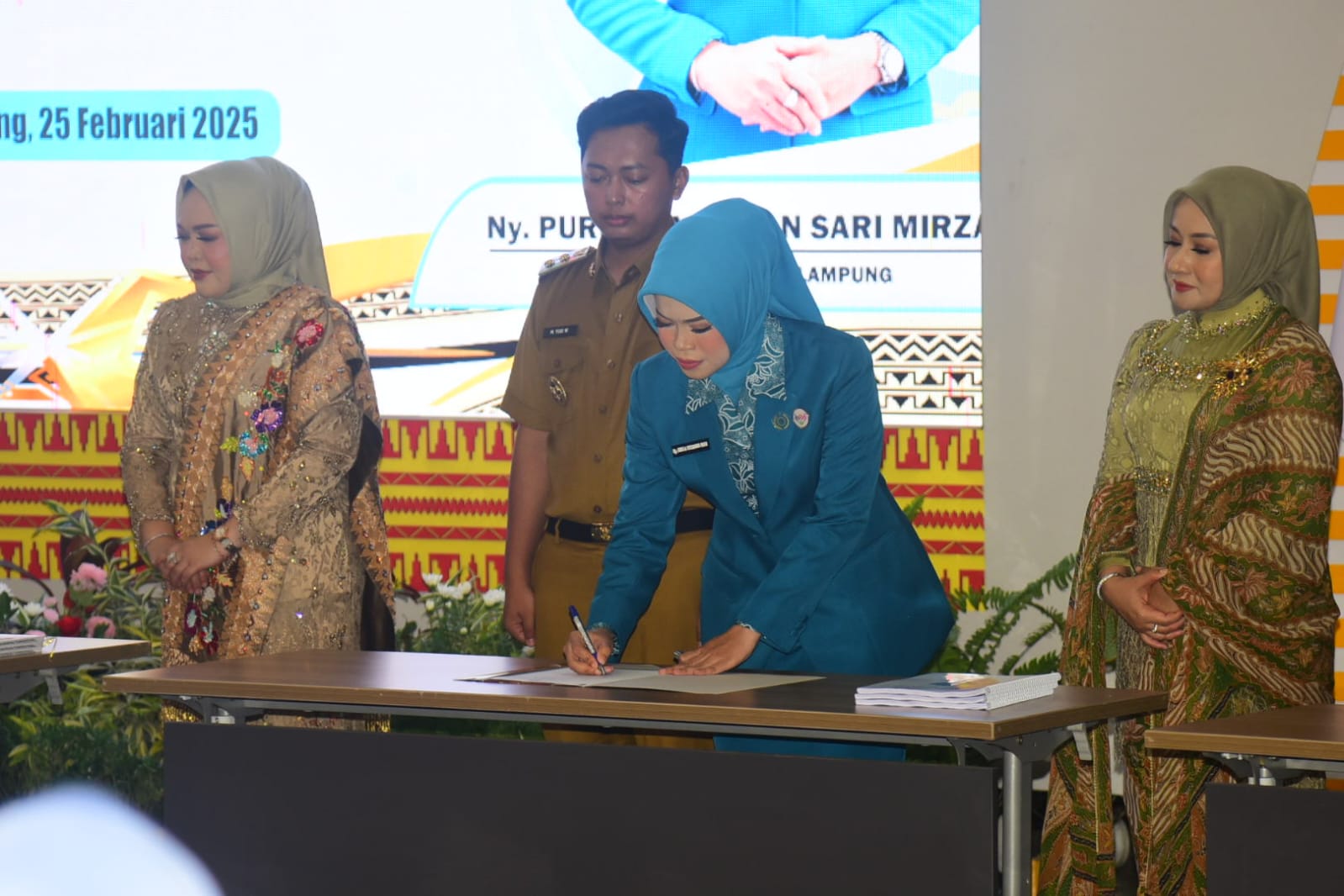 Ketua TP PKK sekaligus Ketua Tim Pembina Posyandu Provinsi Lampung, Purnama Wulan Sari Mirza, melantik 13 Ketua TP-PKK dan Ketua Tim Pembina Posyandu Kabupaten/Kota se-Provinsi Lampung periode 2025 – 2030, di Mahan Agung, Selasa, (25/02/2025).