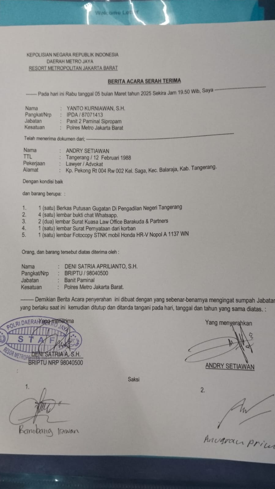 Tak ingin berlarut-larut dalam ketidakjelasan, kuasa hukum akhirnya mengambil langkah berani. Dengan menggunakan towing, kendaraan tersebut dievakuasi paksa dari Polsek Tamansari dan dikembalikan kepada pemilik sahnya. Namun, perjuangan hukum tidak berhenti di situ. Laporan ke Propam Polda Metro Jaya atas dugaan penyalahgunaan wewenang kini tengah dipersiapkan.