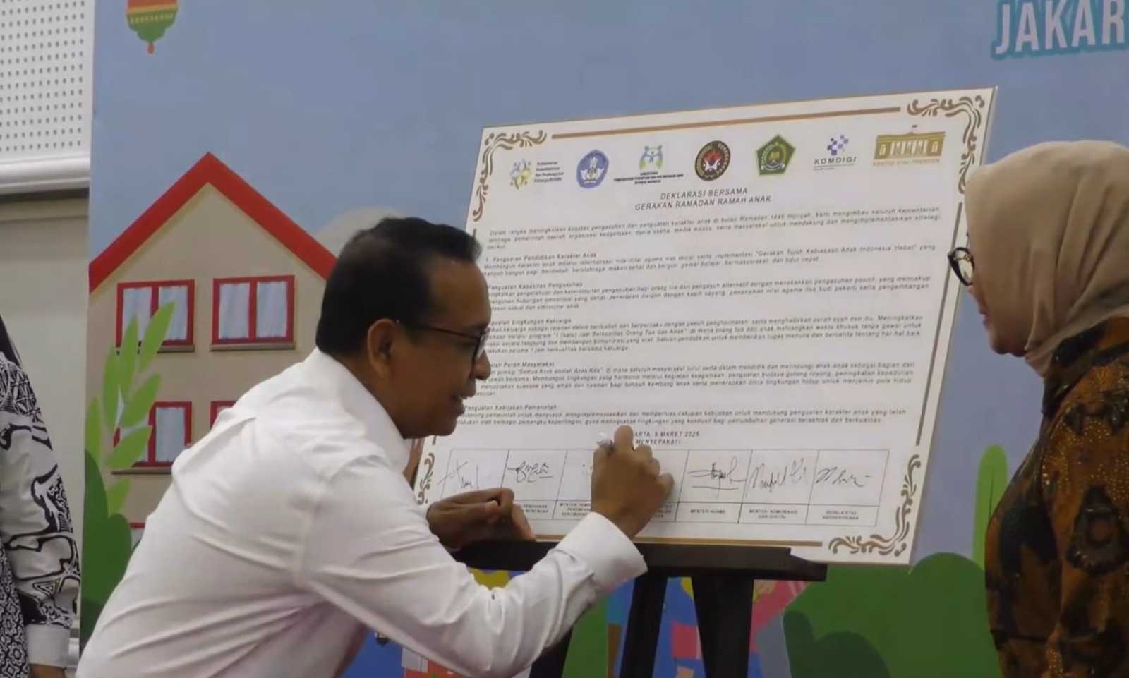 Kegiatan diawali dengan pembacaan Narasi Deklarasi Bersama Gerakan Ramadan Ramah Anak yang kemudian dilanjutkan dengan penandatanganan Deklarasi bersama oleh Menteri Koordinator Pembangunan Manusia, Menteri Pemberdayaan Perempuan dan Perlindungan Anak, Menteri Agama, Menteri Pendidikan Dasar dan Menengah, Menteri Komunikasi dan Digital, Menteri Kependudukan dan Pembangunan Keluarga, dan Kepala Kantor Staf Presiden.