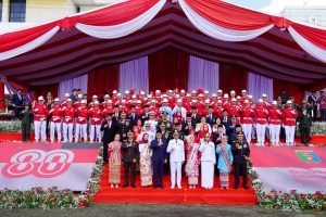 “Delapan dekade yang lalu, para pendiri bangsa dengan gagah berani memproklamasikan kemerdekaan. Hari ini tugas kita adalah melanjutkan perjuangan itu dengan kerja nyata,” ucap Gubernur.