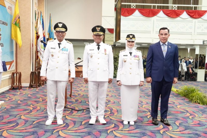 Gubernur Lampung, Rahmat Mirzani Djausal melantik Nanda Indira dan Antonius Muhammad Ali sebagai Bupati dan Wakil Bupati Pesawaran periode 2025–2030 di Balai Keratun, Kantor Gubernur Lampung, Rabu (27/08/2025).