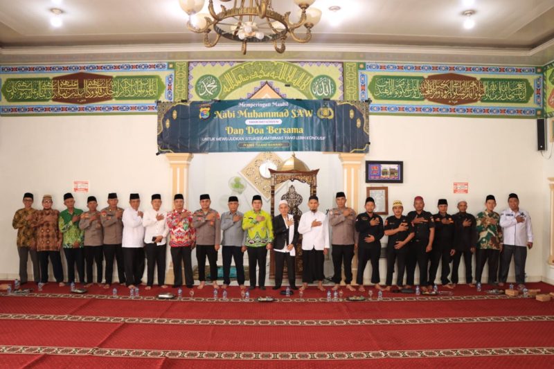 Suasana khidmat menyelimuti Masjid Darussalam Polres Tulang Bawang pada Kamis (11/09/2025) pagi, saat jajaran kepolisian bersama tokoh agama, tokoh masyarakat, dan para personel melaksanakan doa bersama dan peringatan Maulid Nabi Muhammad SAW 1447 H/2025 M.