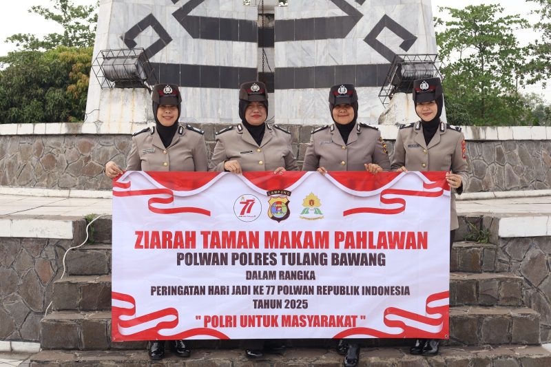 Tulang Bawang – Polisi Wanita (Polwan) Polres Tulang Bawang, Polda Lampung, menggelar kegiatan ziarah dan tabur bunga guna menyambut Hari Jadi ke -77 Tahun 2025.