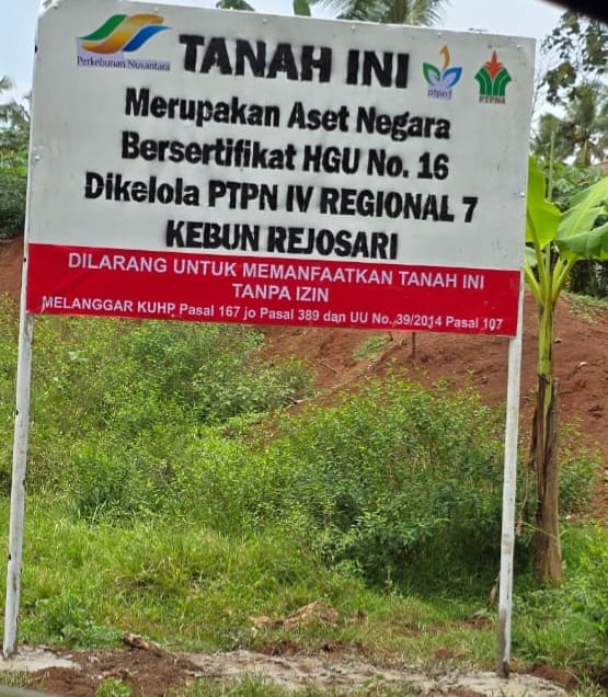 Masyarakat adat Tiyuh Halangan Ratu, Kecamatan Negeri Katon, Kabupaten Pesawaran, menyesalkan tindakan PTPN I Regional 7 Unit Rejosari Natar, Lampung Selatan, yang memasang plang di atas tanah adat mereka. Plang tersebut berisi pernyataan bahwa kebun sawit yang berada di wilayah tersebut merupakan aset negara berasal dari Hak Erpfacaht yg di nasinalisasikan