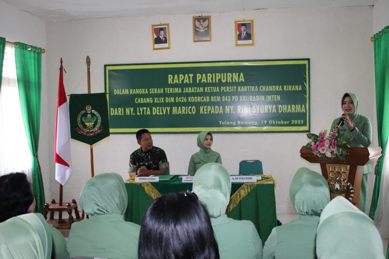 Acara yang berlangsung di Ruang Transit, Jalan Lintas Timur Sumatera KM 113, Kampung Bujung Tenuk, Kecamatan Menggala, pada Minggu, 19 Oktober 2025, ini dipimpin langsung oleh Ketua Persit sebelumnya, Ny. Lyta Delvy Marico, yang resmi menyerahkan jabatan kepada penggantinya, Ny. Rini Syurya Dharma.