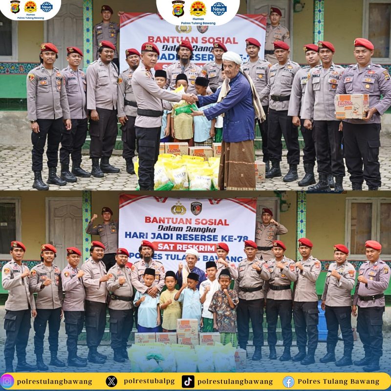 Dalam rangka memperingati Hari Ulang Tahun Reserse ke-78, Satuan Reserse Kriminal (Sat Reskrim) Polres Tulang Bawang menggelar rangkaian kegiatan penuh makna yang tidak hanya mempererat soliditas internal, tetapi juga menunjukkan kepedulian mendalam kepada masyarakat, khususnya anak-anak yatim piatu di wilayah setempat. Kegiatan berlangsung pada Rabu, 10 Desember 2025, dimulai pukul 08.00 WIB di Polres Tulang Bawang dan Yayasan Nadwah Abul Yatama, Kecamatan Banjar Agung, Kabupaten Tulang Bawang.