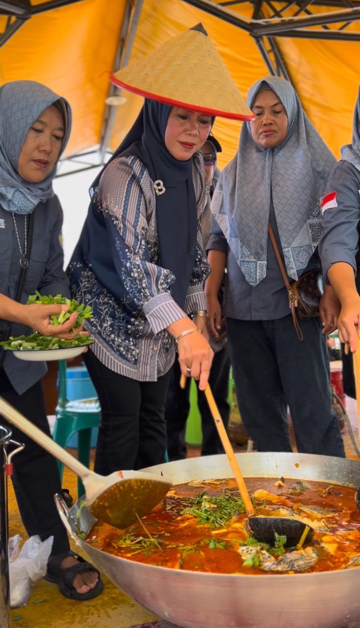 Bahkan ia tidak sungkan menyambangi langsung warga yang sedang mengolah gulai Pepenyok Iwa Mejair, sekaligus menbantu memasak sembari bercanda dengan warga.