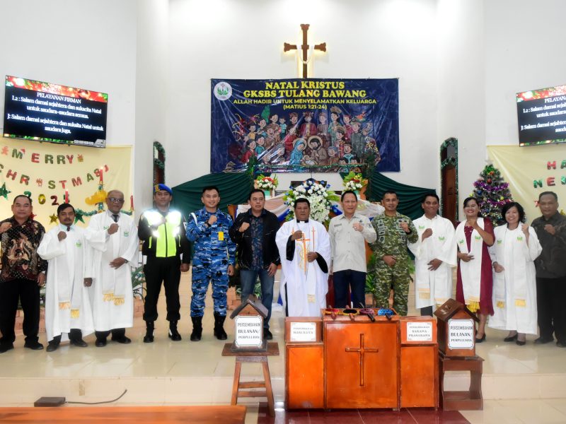 Komandan Kodim (Dandim) 0426/Tulang Bawang, Letkol Syurya Dharma, bersama Forum Koordinasi Pimpinan Daerah (Forkopimda) Kabupaten Tulang Bawang melaksanakan monitoring pelaksanaan Perayaan Ibadah Natal di sejumlah gereja yang berada di wilayah Kabupaten Tulang Bawang, pada Rabu malam 24 Desember 2025.