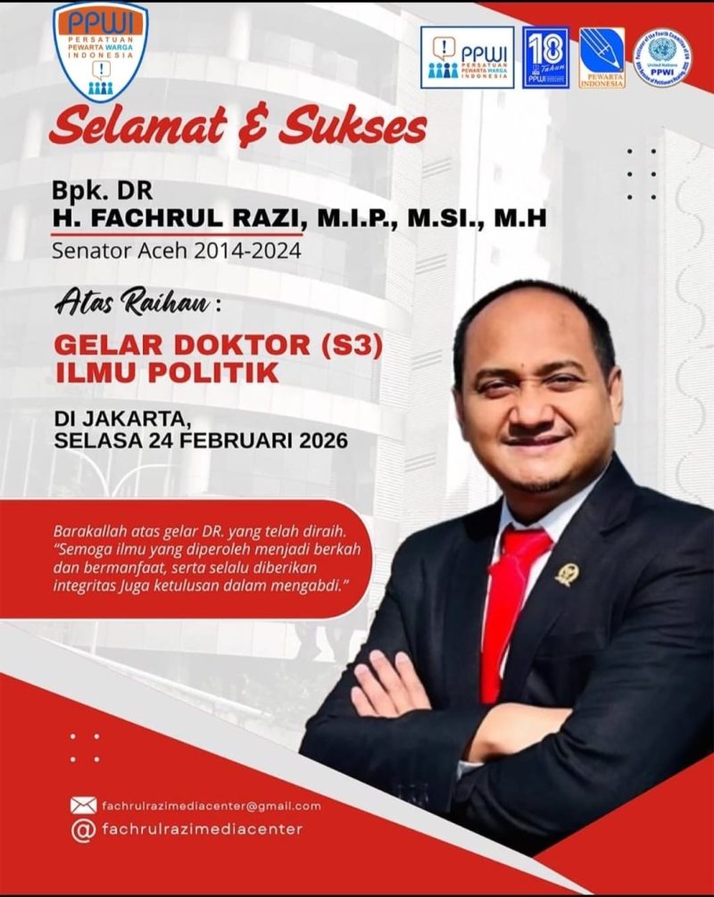 Kabar membanggakan datang dari keluarga besar Persatuan Pewarta Warga Indonesia (PPWI). Sekretaris Jenderal Dewan Pimpinan Nasional (DPN) PPWI, Dr. Fachrul Razi, S.I.P., M.I.P., M.Si., M.H., M.I.Kom., resmi meraih gelar Doktor di bidang Ilmu Politik dari Universitas Nasional pada Selasa, 24 Februari 2026.