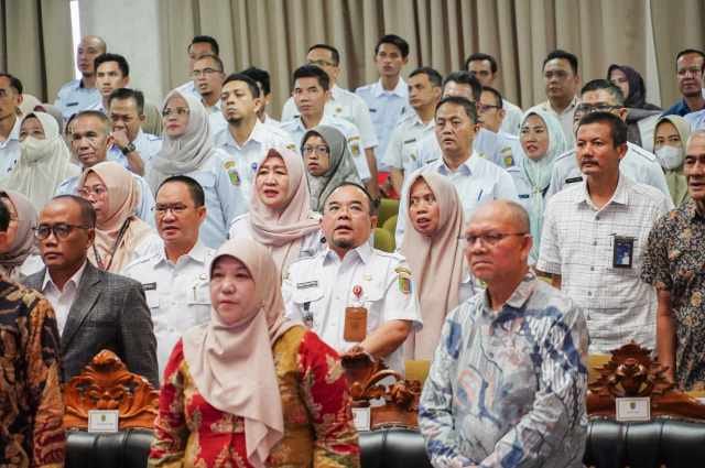 ”Kita sadari bersama bahwa tugas utama pemerintah adalah mewujudkan pelayanan yang sebaik-baiknya kepada masyarakat. Namun pengalaman menunjukkan bahwa salah satu titik lemah dari birokrasi adalah kecepatan ritme regulasi yang sering berjalan lebih lambat dibandingkan dengan dinamika tantangan atau pembangunan yang terjadi di masyarakat,” ujar Sekdaprov Marindo saat membacakan sambutan Gubernur.