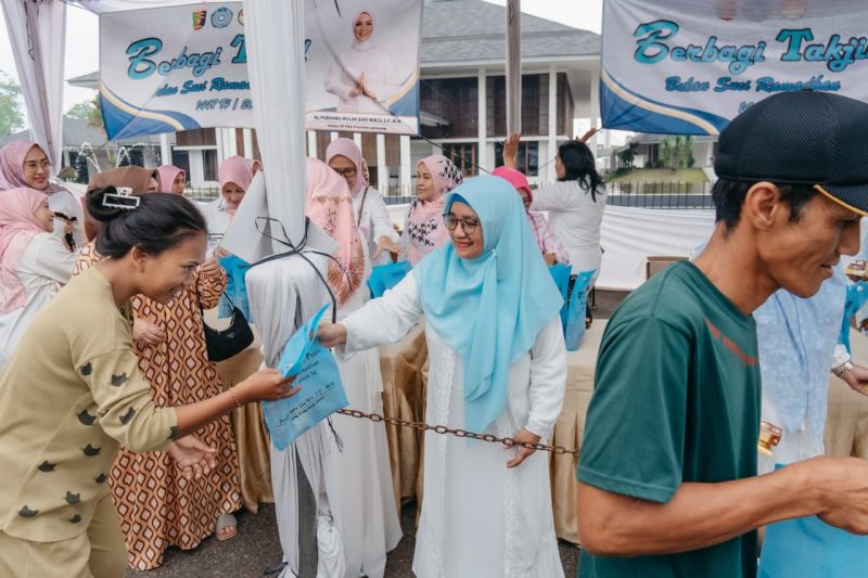 Seperti hari-hari sebelumnya, pembagian takjil dilakukan menjelang waktu berbuka kepada pengendara dan warga yang melintas di kawasan tersebut. Ibu-ibu Dharma Wanita tampak membagikan paket takjil secara langsung dengan tertib, disambut antusias oleh masyarakat.