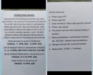 Bandar Lampung, April 2026 — Masyarakat di wilayah Kelurahan Gedong Pakuwon, Kecamatan Teluk Betung Selatan, menyoroti proses pendaftaran pemilihan Ketua RT yang dinilai terindikasi melanggar Peraturan Wali Kota Bandar Lampung Nomor 13 Tahun 2020.