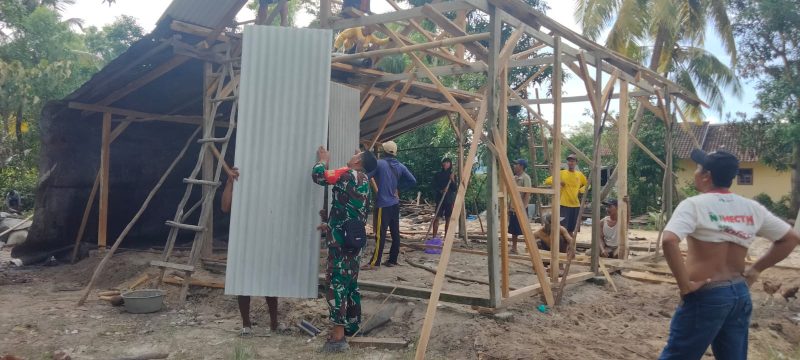 Dalam pelaksanaannya, Sertu Priyo Santoso bersama warga setempat bahu-membahu mengerjakan pembangunan rumah sebagai bentuk kepedulian terhadap sesama serta upaya membantu meringankan beban masyarakat.
