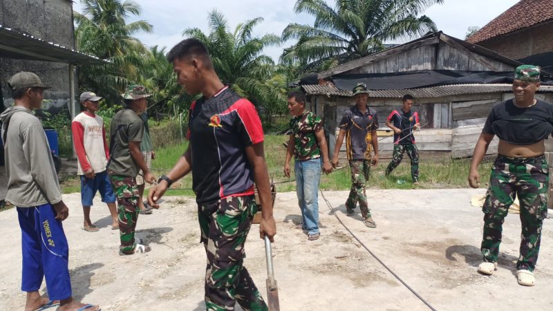 Danramil 426-03 Rawajitu Mayor Arif Affuan Pimpin Gotong Royong Perbaikan Jalan di Rawajitu Selatan