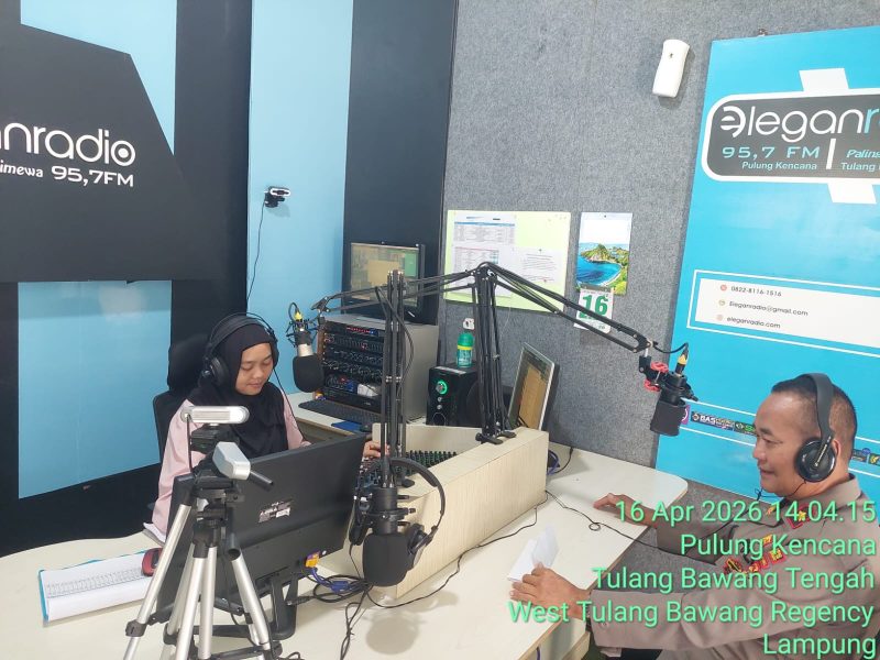 Berbagai cara dilakukan oleh Polsek Tulang Bawang Tengah Polres Tubaba, Polda Lampung dalam menyampaikan Pesan dan Imbauan Kamtibmas yang di sampaikan oleh Kapolsek Tulang Bawang Tengah melalui talk show di Radio Elegen 95,7FM Tiyuh Pulung Kencana Kec.Tuba Tengah Kab.Tubaba, Jumat (17/04/2026)
