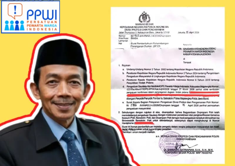 Sementara itu, Ketua DPC PPWI Kabupaten Majalengka, Hendrato, membenarkan telah menerima surat dari Divpropam Mabes Polri.