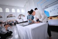 BANDAR LAMPUNG—Gubernur Lampung, Rahmat Mirzani Djausal bersama Menteri Agama RI Nasaruddin Umar dan tokoh nasional Aburizal Bakrie menandatangani prasasti sebagai tanda peresmian Masjid Raya…