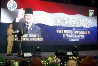 Bandar Lampung Wakil Menteri Transmigrasi, Viva Yoga Mauladi, didampingi Sekretaris Daerah Provinsi Lampung, Marindo Kurniawan, memimpin pelepasan 45 kepala keluarga (KK) peserta Program Trans…