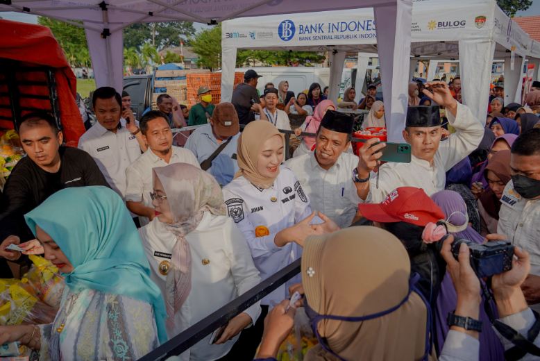 Lampung Tengah Wakil Gubernur Lampung, Jihan Nurlela meninjau pelaksanaan Pasar Murah dalam rangka menyambut Ramadan dan menjelang Idul Fitri 1446 H, di Lapangan Rejosari,…