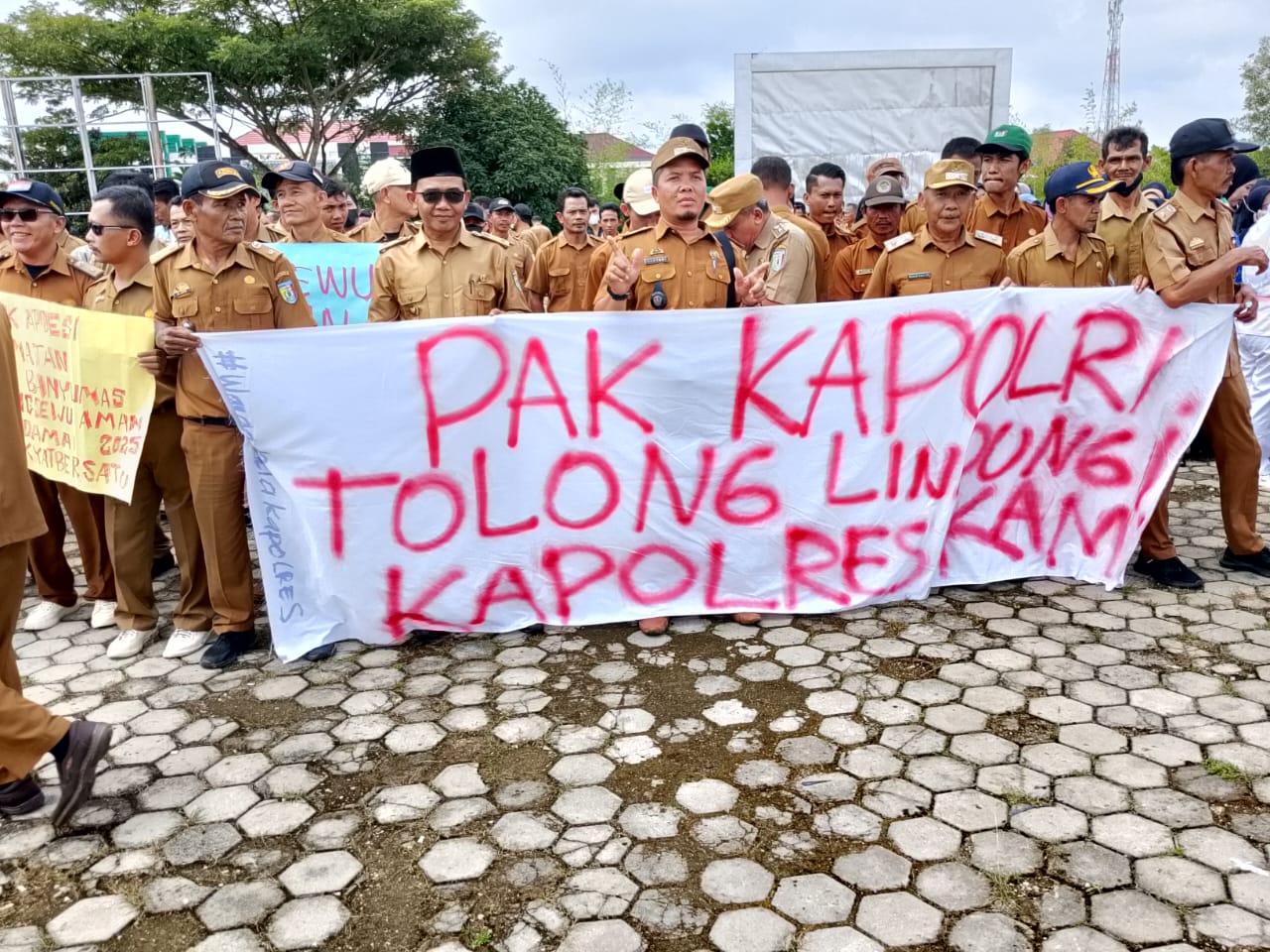 Pringsewu Lampung Aksi demo dua Instansi dan APDESI Kabupaten Pringsewu yang di gelar di lapangan Komplek Pemerintahan Daerah ( PEMDA ) Kabupaten Pringsewu senin…